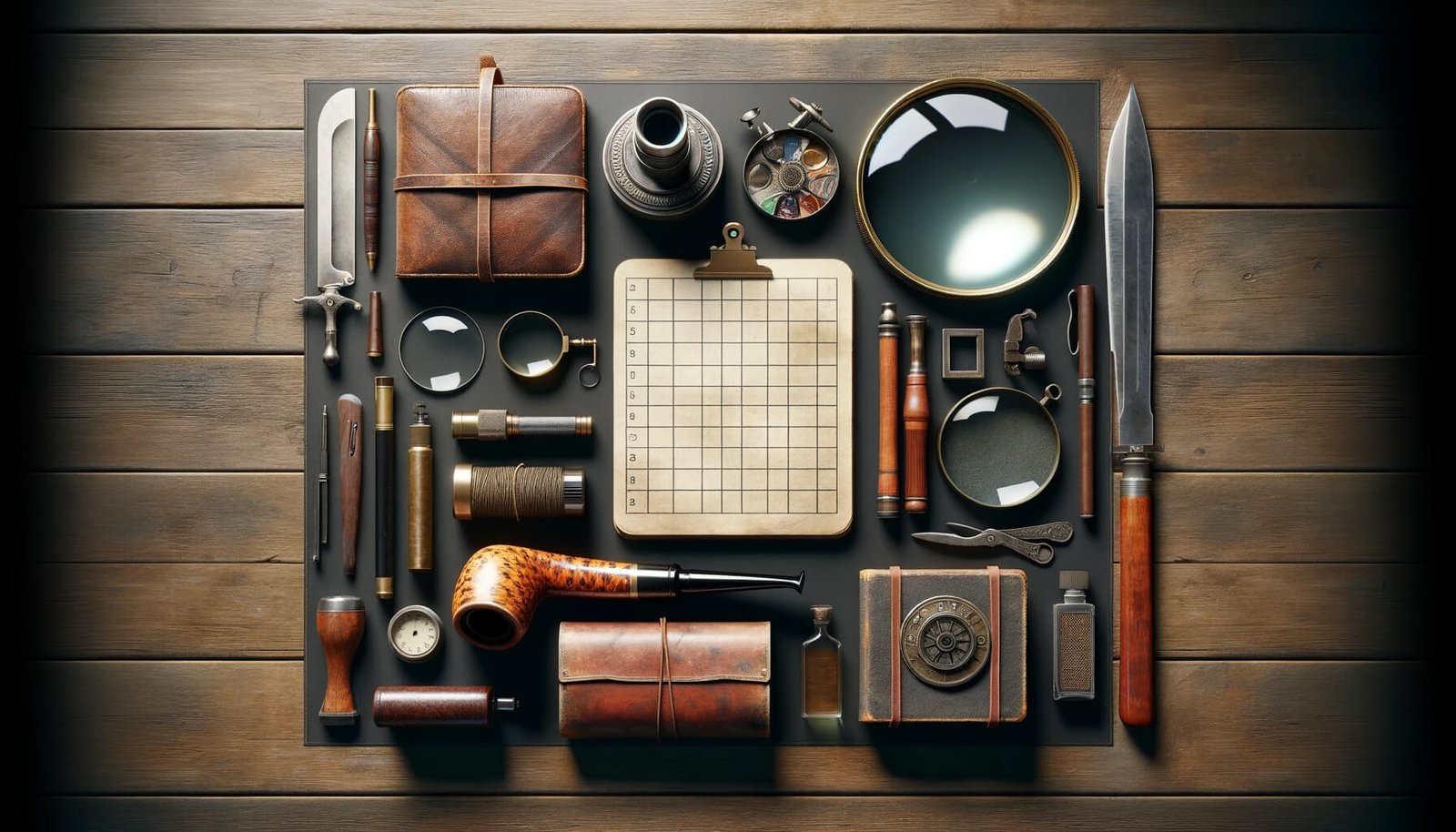 Стъпвате към бюрото, преглеждайки го за нещо необичайно. Хартиите, мастилницата, дори писалката – всеки предмет може да крие улика.